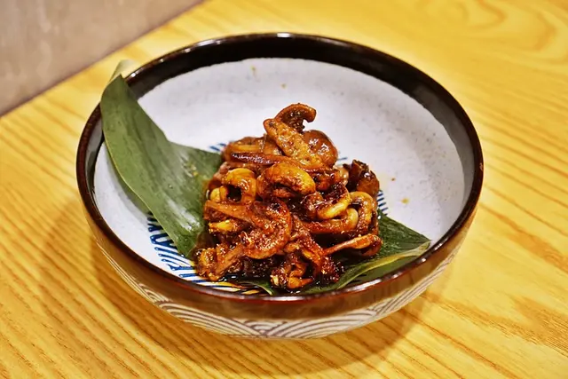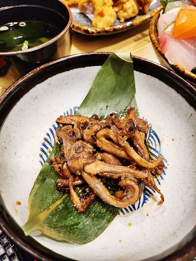 店家服務很親切 一開始送上熱茶跟招待的炸鰻魚骨