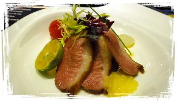 這是櫻桃鴨胸野菇沙拉!!這一道很好吃!!鴨胸三塊!!下面有不少野菇!!精緻但好吃!!