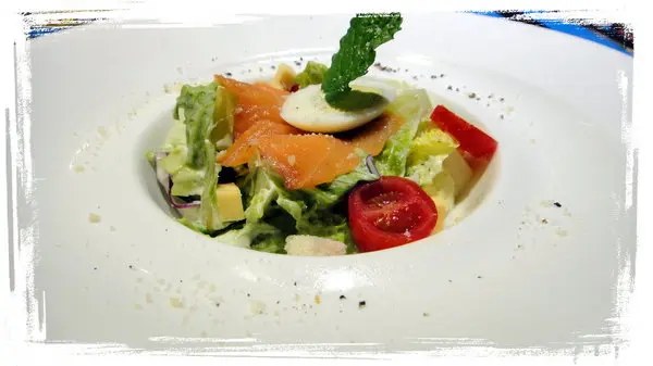 燻鮭魚蘿蔓沙拉~~跟崇德店的一樣~~鮭魚兩片左右然後滿滿生菜!!也不賴!!