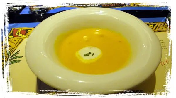 這是海鮮南瓜濃湯~~這個也很不錯~~海鮮料很多~~有蝦子~蛤蠣~蟹肉等!!很濃郁好喝!!