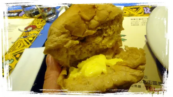 麵包跟奶油~~刀子兩個人一隻~要輪著用!!我把麵包切開放奶油進去!!再沾濃湯吃!!