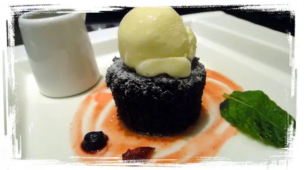 這是古典巧克力蛋糕佐香草冰淇淋!!!這道也超棒!!!下面根本就巧克力布朗尼!!會爆漿!