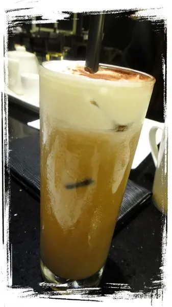 這是咖啡歐雷~~也就是冰咖啡啦!!上面有奶油這樣!!!表現尚可!!