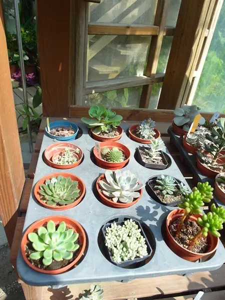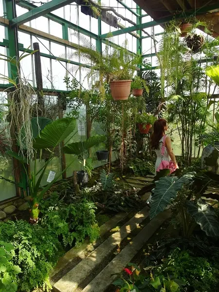 往園區另一邊走 會有一間很像溫室的植物園 門口擺滿了許多小盆栽