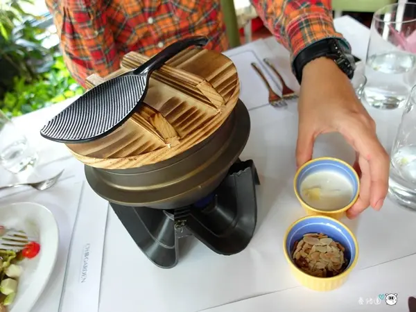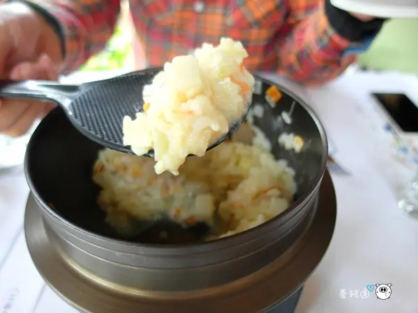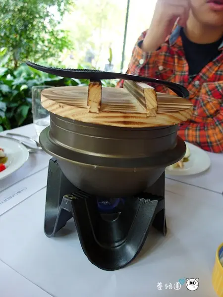 送上來不能馬上吃 要等火熄了然後再燜十分鐘才可以打開我非常記得等我們吃到這炊飯已經是兩點十分的事情了