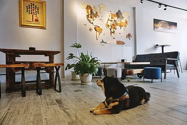 這間恰吉可頌我非常推薦,餐點好吃,店裡氣氛悠閒,還有可愛黑柴店狗