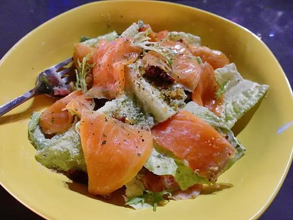 所以我們就先點了一個燻鮭魚凱薩沙拉XD
