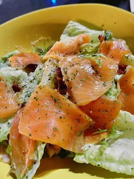 這次第一次換吃燻鮭魚 他們的凱薩沙拉醬給很多 生菜的量也很足 味道很夠