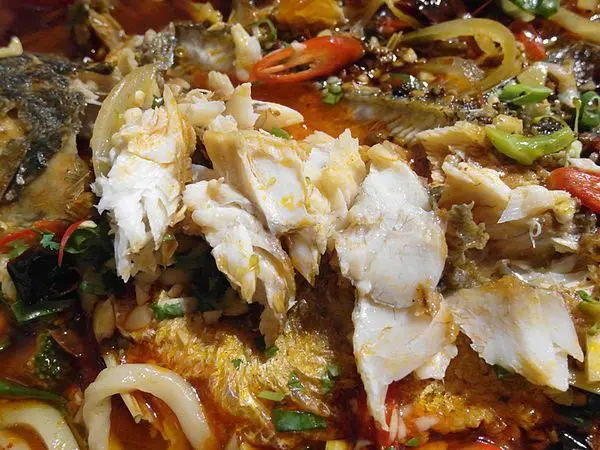 傳說中三國烤魚源自於劉備、關羽、張飛桃園三結義時,特地聚集鄉中勇士,設宴讓大家大魚大肉痛快一番,那時剛好有位姓張的廚師負責烹飪,他用一手絕活炭火石鍋烤魚,漿烤好的魚放在石鍋中煨燉,醇和味養,鮮上加鮮,十分好吃,以致於當時酒肉過後的勇士士氣大振,劉備心中大喜,揮刀盟曰:“汝等烹飪有佳,當記頭功”。在劉備登基,特定石鍋烤魚為蜀國國菜,三國石鍋烤魚由此而來,而後則深受諸葛亮喜愛,成為軍中慰勞將士的一道佳餚。