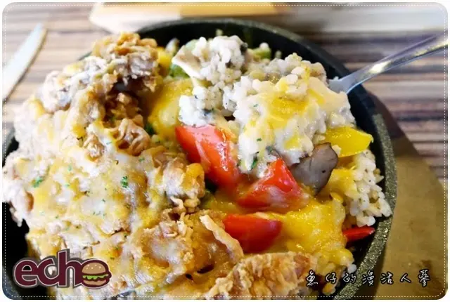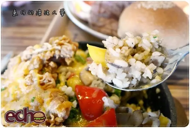 米粒的口感介於炒飯與燉飯間,這種中、西、韓合併的料理讓我傻傻分不清...