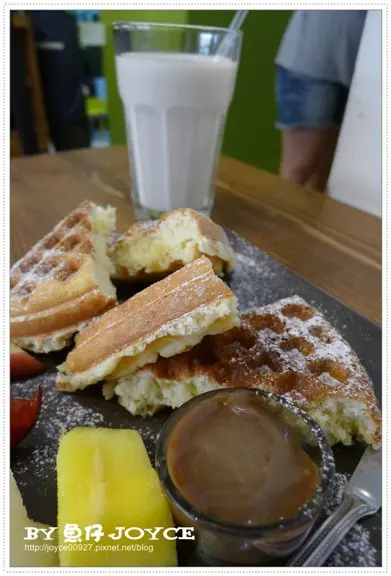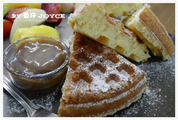 厚度不薄的鬆餅非常的紮實上頭還灑上糖粉,酥酥的外層以及柔軟的內層...