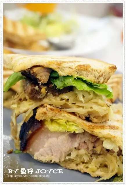 吐司、生菜加上五花肉、酸菜...這樣的組合跟宮保雞丁義大利麵讓人張大嘴驚訝的程度不相上下