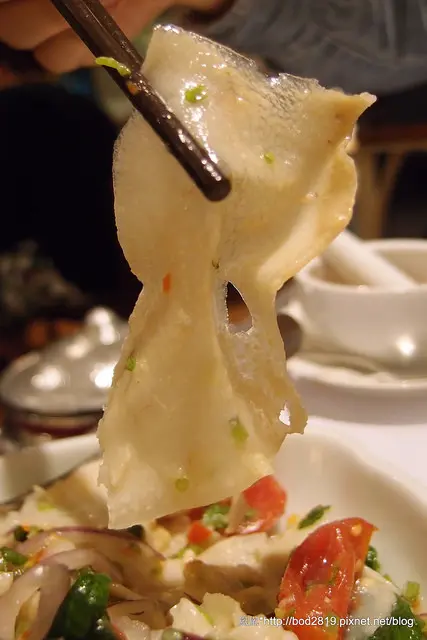 因為強調薄片,所以會切得非常薄,吃起來口感又Q又脆,