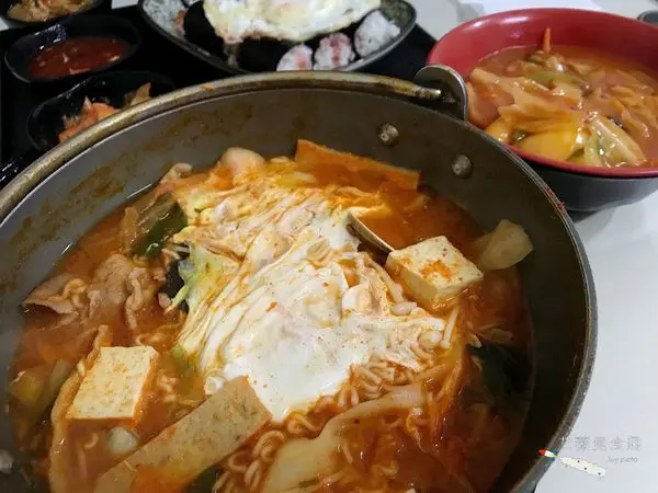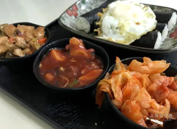 飯捲和炒麵飯類皆可選3樣配菜,每種配菜都很美味配著飯捲好下飯,飯捲內的米飯Q彈有勁,讓人吃完還想再點一份。辣炒年糕絕對必點,份量很夠,辣醬味道嘟嘟好甜中帶辣,超對我的味泡菜鍋份量大到不行,配料又多價錢又低,C/P值實在是高到破表了拉