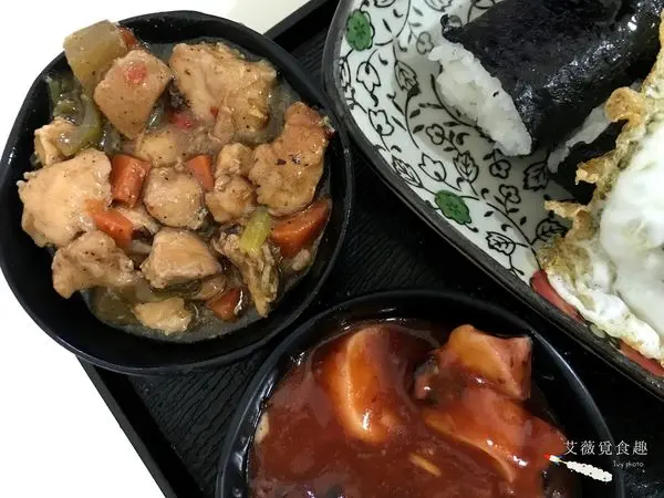 飯捲便當+煎蛋(10元)+宮保雞丁/泡菜肉片/五味章魚 $80元