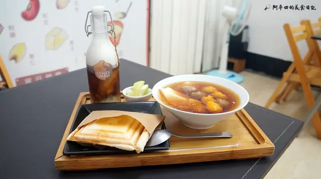 果核豆花鄉跟一般的豆花店不太一樣,他有兩種套餐搭配,可以當作早午餐也可以當作下午茶,這點我覺得不錯,價格更是親民,百元有找呢!平常在家裡都吃媽媽做的豆花,比較傳統古早味的薑汁豆花,但都沒有搭配用料,而果核豆花鄉的用料非常實在,每日現做的豆花及配料,吃得安心又健康