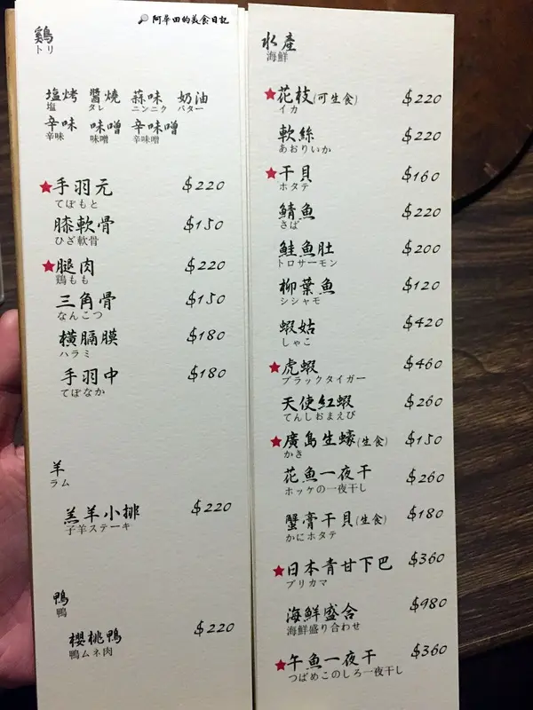 ▲雞、羊、鴨、海鮮,雞肉部分可以選擇塩烤、醬燒、蒜味、奶油、辛味、味噌、辛味噌
