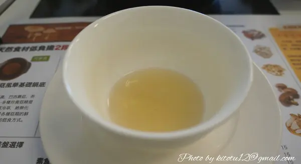「菇食美鍋 」鍋物分為"2段式吃法",天然的鍋底菇湯,此為第1段吃法。