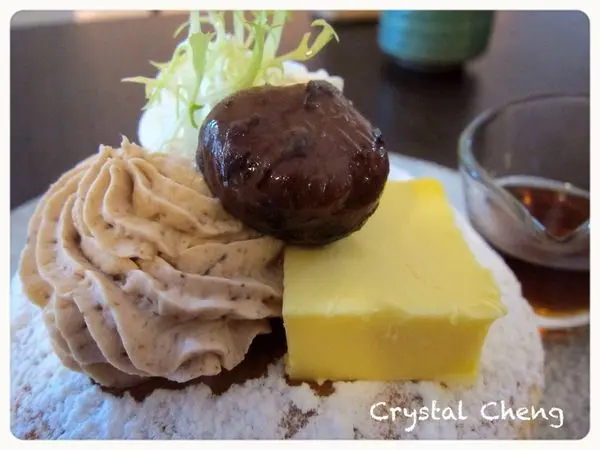 栗子味道很濃,搭配鬆餅一起吃,很好吃,再加點楓糖也不會太甜膩。