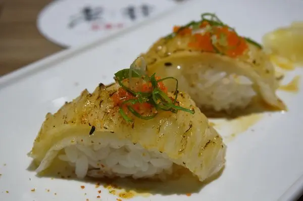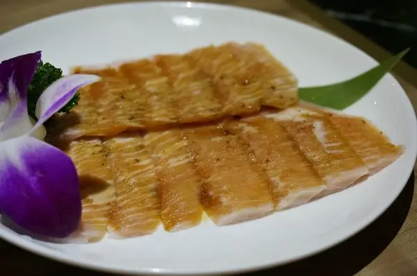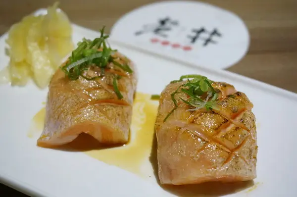 鮭魚肚好厚,上面炙燒的花紋很漂亮呢