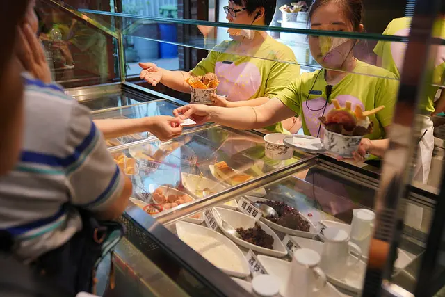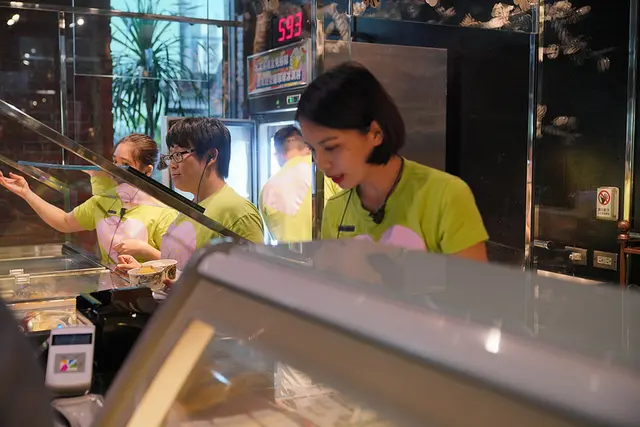 老實說很擠,大家都在等待屬於自己搭配的冰品。