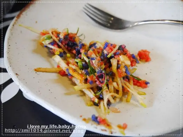 偶而吃到葡萄柚跟蘋果絲帶著爽脆的口感,清爽又不油膩
