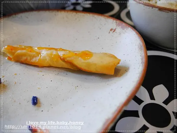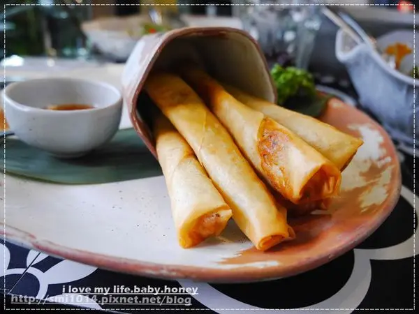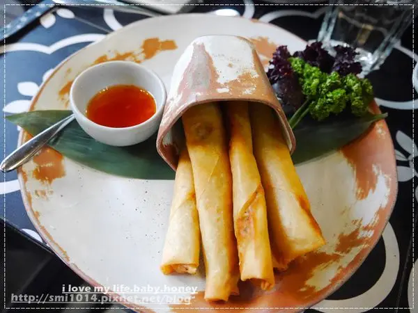 Thaï.J的炸春捲細長型的,配上整體擺盤讓普通的春捲感覺更美味
