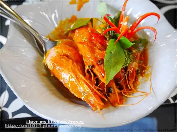 每隻蝦子都細心劃開背殼,鮮嫩多汁的蝦肉配上紅咖哩,白飯都多扒好幾口