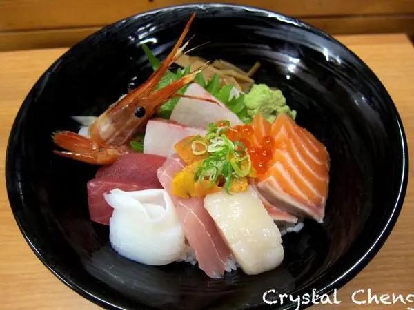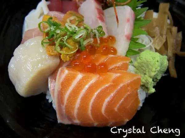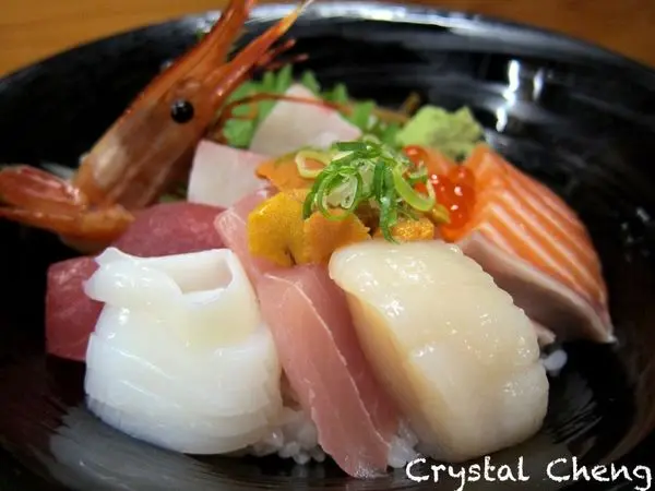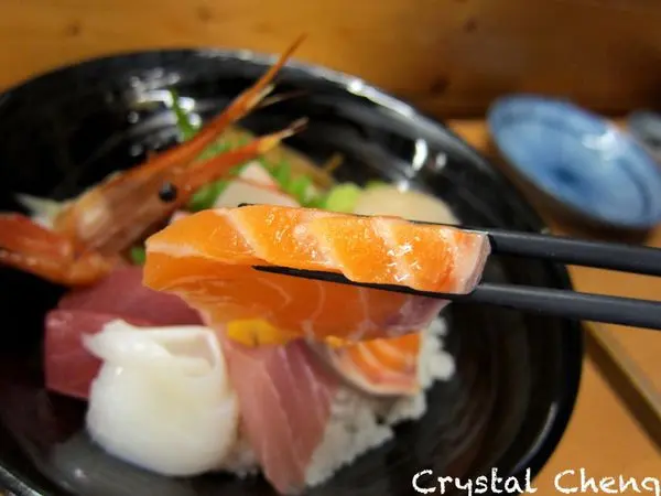 鮭魚、海膽、紅甘、干貝、花枝、甜蝦和鮪魚,生魚片的味道都非常新鮮,