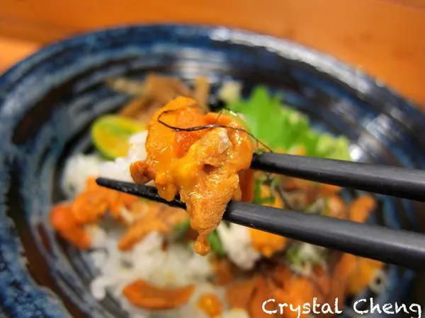 上桌後的丼裡的海膽看起來比較小瓣,是給的蠻多的,