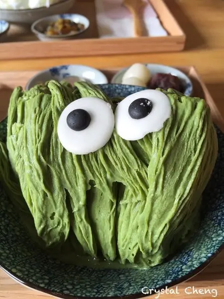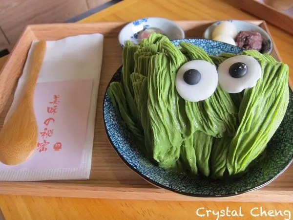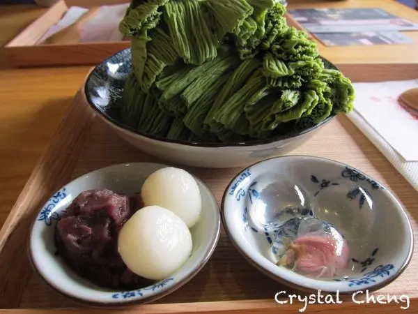 莫名的點了抹茶口味就想配紅豆白玉加櫻花,非常日式風。