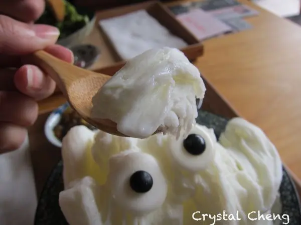 先吃一口鮮奶冰,口感很好,拿起來還會有點牽絲,