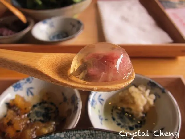 櫻花凍沒什麼味道,但是吃到有櫻花的那顆凍才有點鹹味,