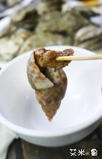 第一猛的風螺特別費功夫,先將胡椒塞入風螺肚的前置作業讓烤好的風螺肉嗆辣彈牙、QQ脆脆的,絕對是冰啤的好麻吉