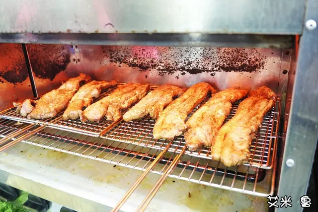 去骨雞腿排加了迷迭香類香料醃漬入味燒烤,吃起來外皮微焦香脆,內部肉質細嫩多汁,無需費力咀嚼也不塞牙縫,香噴噴的一塊接一塊~