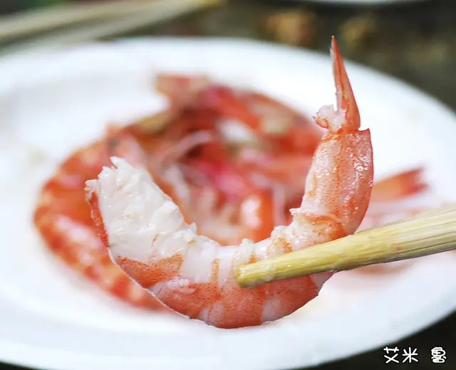 新鮮的蝦子川燙一下最美味,瞧艾米的去殼功夫一流,連蝦尾都能脫得如此完美 ^^