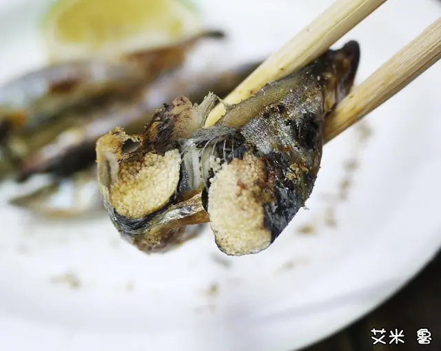香烤喜相逢不必去刺全部都能下肚,每一隻都帶著滿滿的魚卵,吃起來鹹香鹹香的還有啵滋啵滋口感十分有趣!