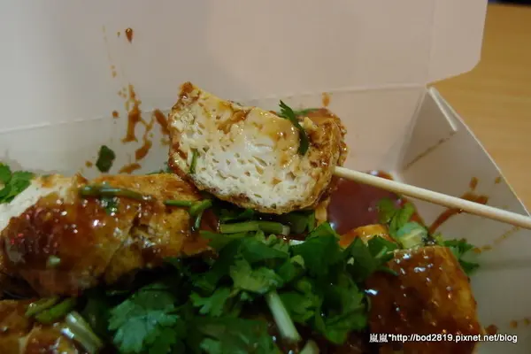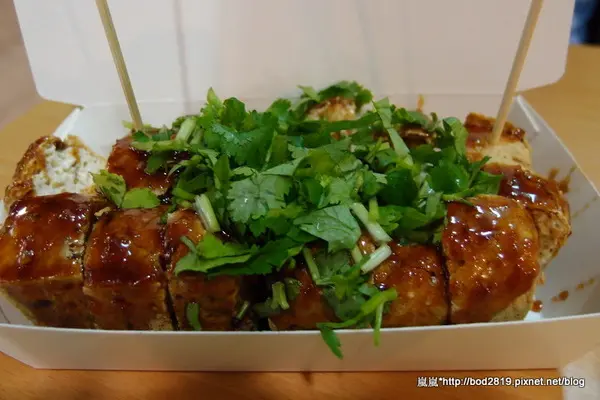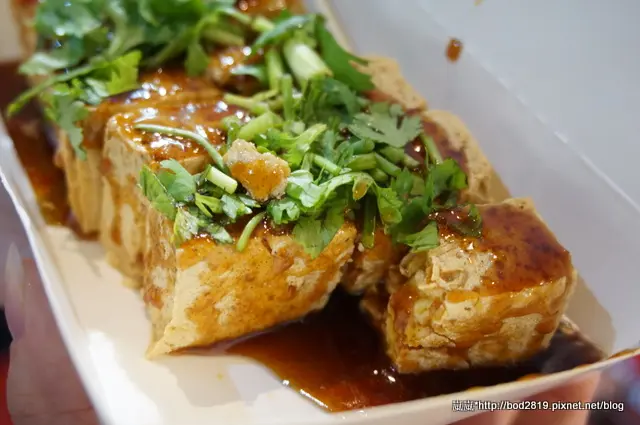 香酥臭豆腐(50) 店家建議點小辣,但因為我不喜歡吃辣就沒點了, 在店家極力推薦下以前點過一次小辣的,是有比較提味, 所以如果愛吃辣的就點個中辣大辣吧XD熱熱辣辣的吃起來挺過癮的 然後臭豆腐一份真的好多喔(好像是兩大塊豆腐再切成這樣)! 皮酥酥脆脆的不油膩,搭配裡面軟嫩的豆腐,真的好好吃 然後他們家的醬汁有點甜甜的,不會死鹹