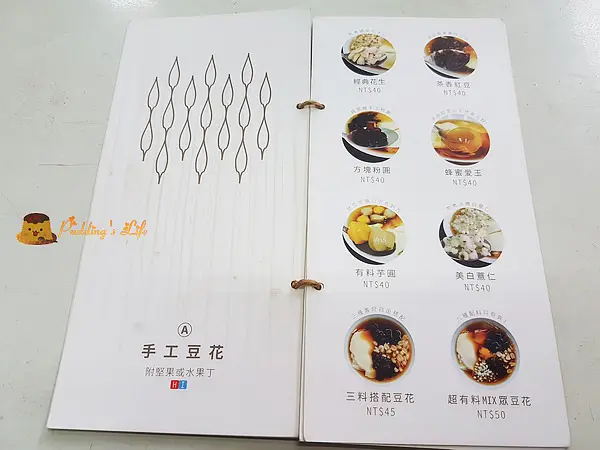 手工豆花有經典花生.茶香紅豆.方塊粉圓.
