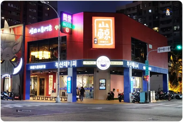 紅色2樓是 山鯨燒肉、藍色1樓是 釜山.珍妮佛
