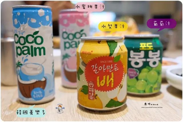 我最喜歡外包裝有椰子圖案喝起來像是可爾必思的韓國養樂多和水蜜桃果汁
