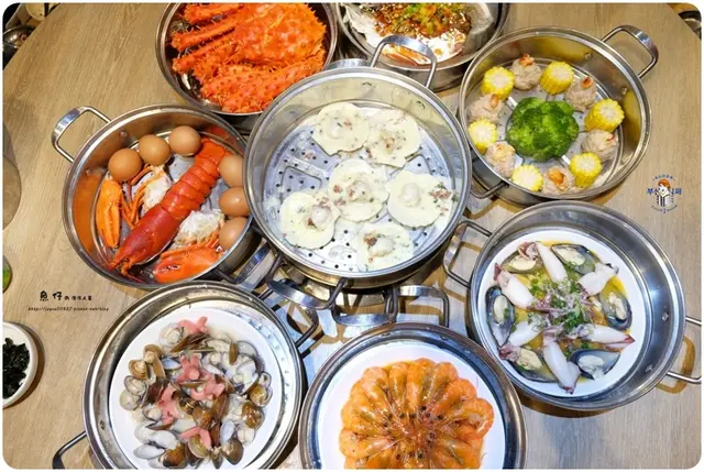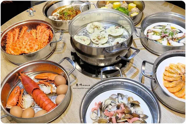 層層推疊的方式,九層蒸鍋裡有10種以上的海鮮,用的食材也很高檔