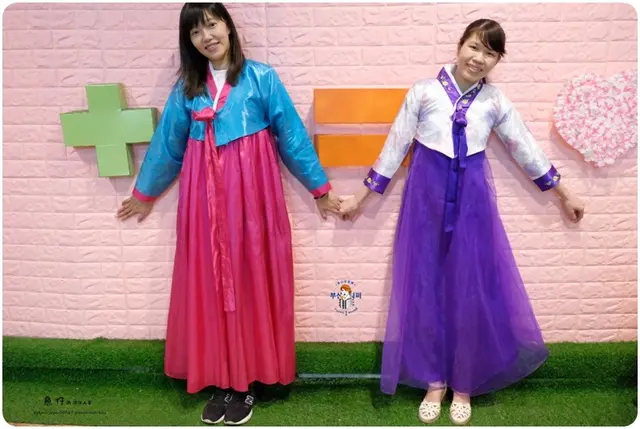 穿韓服在粉紅牆拍照,充滿溫馨的畫面也太可愛
