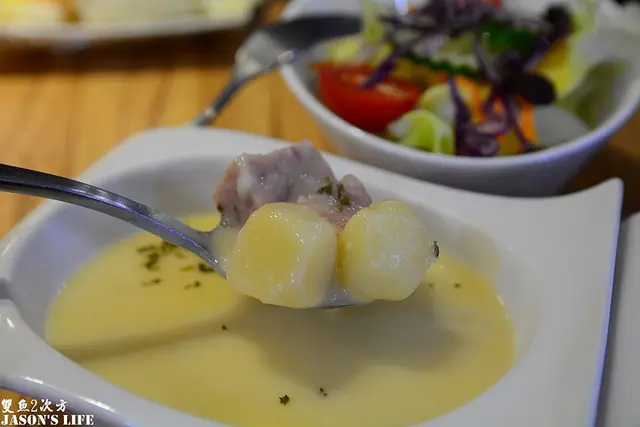 因應芒果季節,所以雙魚自調了芒果沙拉醬汁