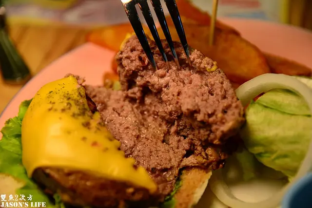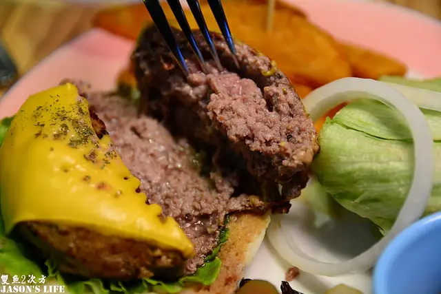 手打的牛肉堡,紮實不膩口,刀子一切開肉汁傾瀉而出