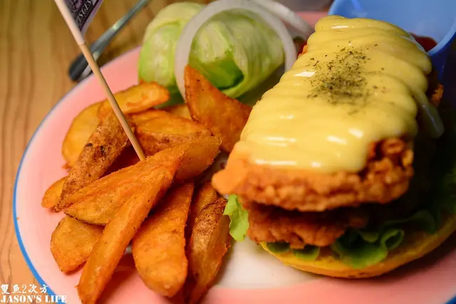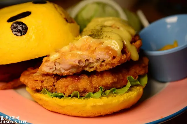 漢堡有雞腿、牛肉、魚肉可以選擇,有附餐飲料,如果要DIY +30元材料費