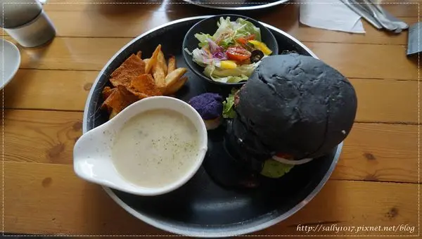 這裡的黑系列~~外表有讓我驚豔~~不僅漢堡皮是竹炭黑色的