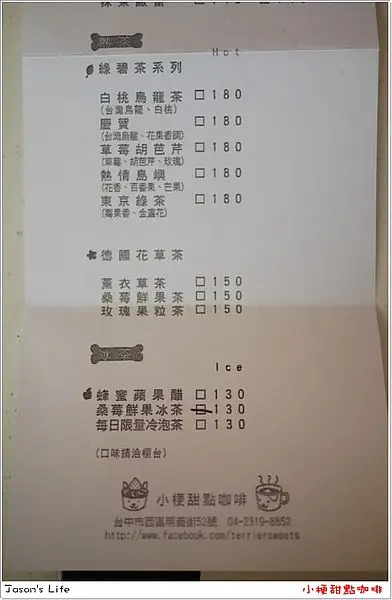天人交戰最後選擇了【桑莓鮮果冰茶:130元】、【小梗鮮奶茶:130元】