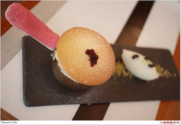 旁邊搭配的是覆盆莓冰淇淋加上奶酪