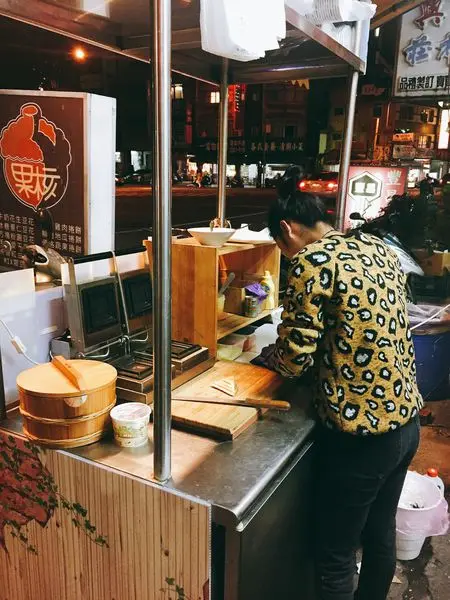 正在製作餐點的老闆娘身影